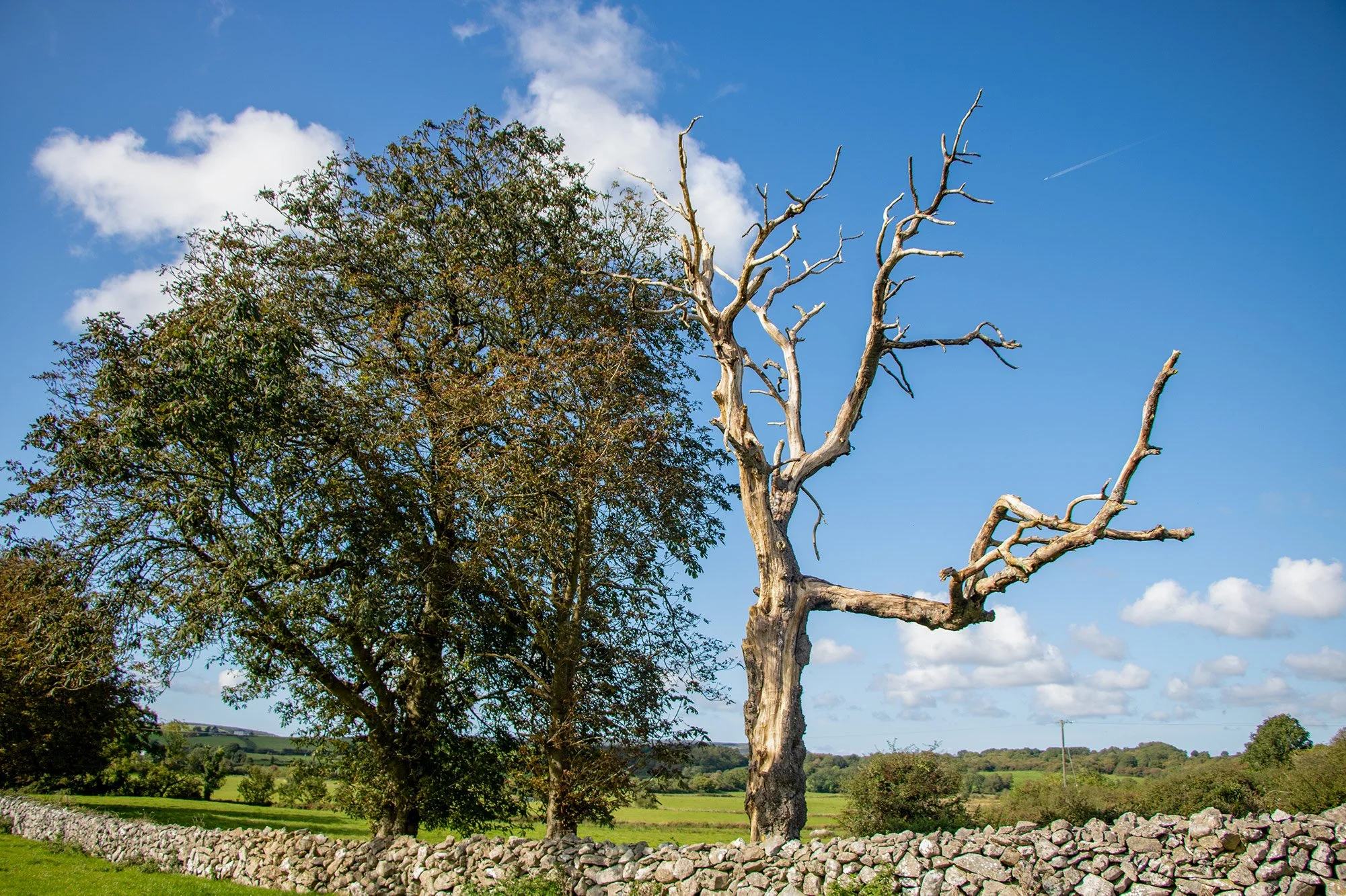 Making my way along the pasture walls to the cross, scanning the herd of cows to see if any were quickly approaching me, I think of how common it is for ancient ruins to be embedded in the Irish’s everyday life. That is not something I am accustomed to seeing. I am still amazed at each discovery. Along the pasture wall, two trees stand out from the rest of the landscape stretching upwards and outwards towards the light. Each tree noble, majestic and powerful, one living and one ghost-like. I find the striking contrast very insightful. Just as the past and present are in harmony here, I feel both the physical and spiritual realms to be seamless. The veil is very thin. The two trees, standing together with a message to me that there is no here or there, the separation is only an illusion. We are all together merely on different parts of our journey. The subtle whispers of those who are near may be heard once we come into harmony with our soul, silence our mind and move past our comfortable illusions. We simply must remember how to listen.